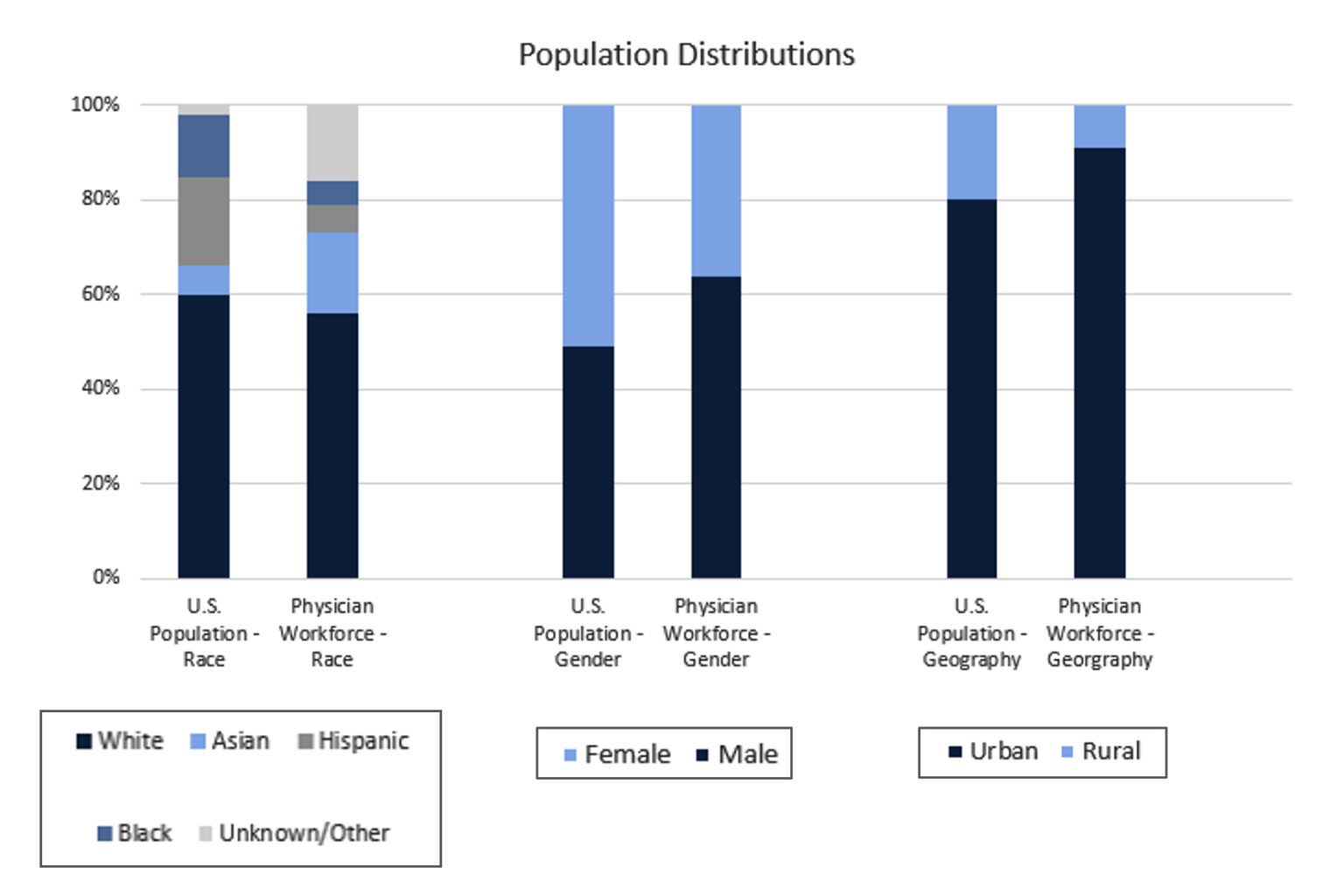Minority populations in the United States continue to be underrepresented in the physician workforce resulting in disparities in health outcomes. As we continue forward, armed with a greater understanding of historical inequalities, leading healthcare organizations must continue to educate medical students, healthcare professionals, and the public on inequities and drive efforts for meaningful, sustainable change. The United States medical education system must produce a workforce that can effectively serve the entire population, regardless of racial, economic, geographic, or socioeconomic status.
