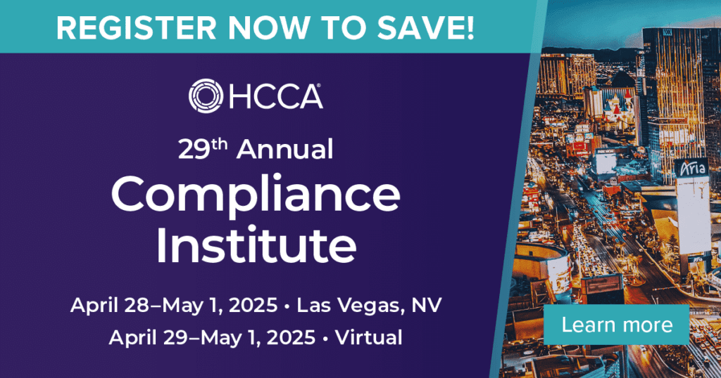 HCCA provides educational opportunities and resources to support the healthcare compliance profession. For more than 25 years, its Compliance Institute has gathered professionals from across the country to share best practices and emerging trends.