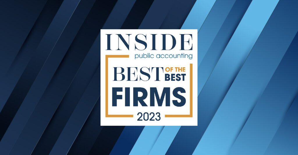 PYA has been named an INSIDE Public Accounting Best of the Best Firm for 2023 in recognition of its visionary strategic leadership, management, and growth.